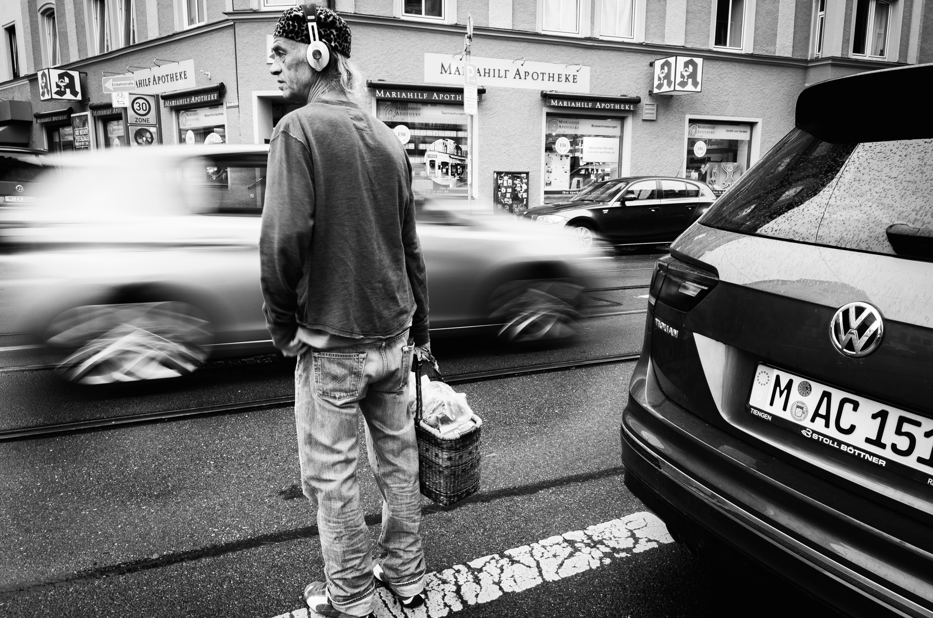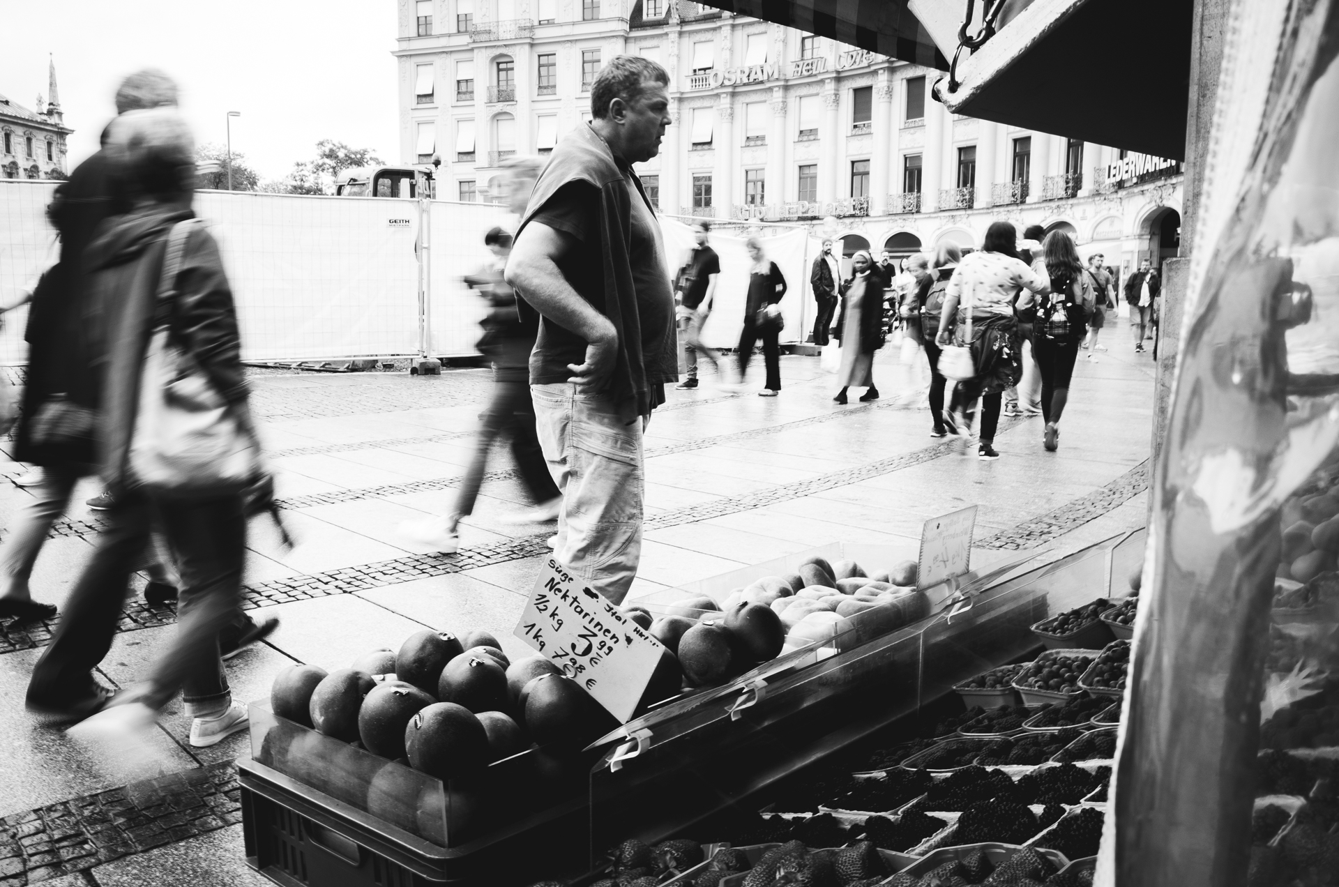 Immer noch knapp 1h Zeit. Ok. Das hört sich doch machbar an. Da schwirrte mir von Anfang an der Obletter und ein gelangweilter Vater im Kopf rum, der vorm Laden wartet, bis seine Frau mit einem glücklichen Kind wieder aus dem Spielwarengeschäft gewackelt kommt. Und genau so hab ichs dann auch gemacht. Jetzt bleiben mir noch 40 Minuten fürs letzte Bild + vom Stachus zurück zum Nockherberg zu kommen. Den Rückweg hatte ich echt nicht mehr auf dem Schirm,… wuah!