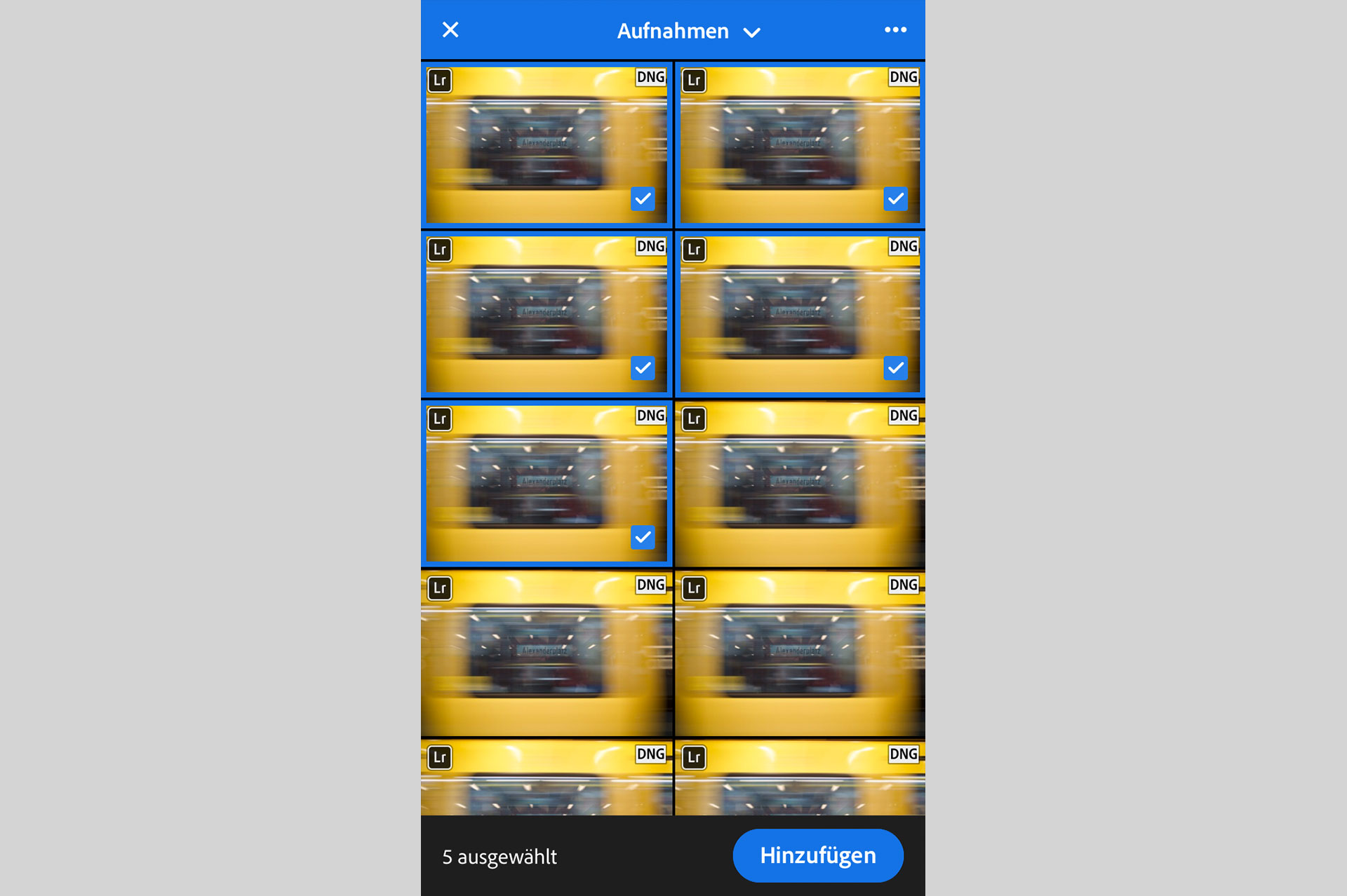 Öffne dann das neue Album und füge meine DNG Bilder „Aus Aufnahmen“, die du gerade runtergeladen hast, hinzu.